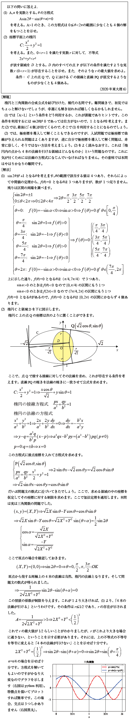 [D]楕円の法線を4本描く領域の問題(2020年東大理科6)