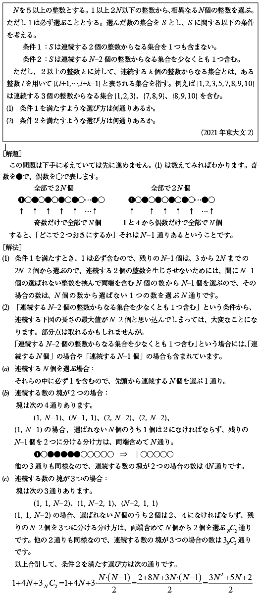 [B]2N個の整数からN個の整数を選ぶ問題(2021年東大文2)
