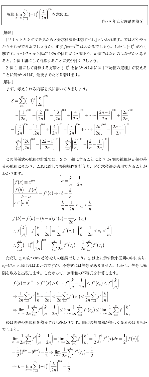 [D]リミットとシグマの難問(2003年京大理系後期5)
