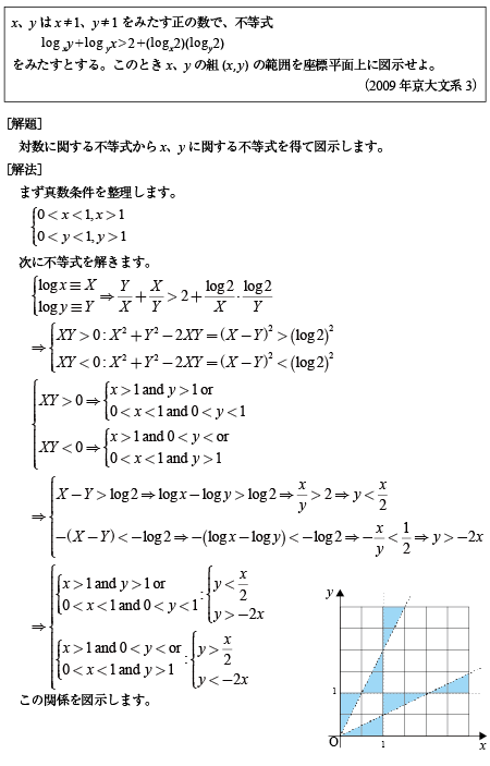 [B]対数不等式の領域表示の問題(2009年京大文系3)
