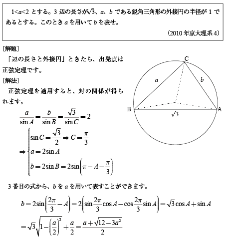 [B]三角形の1辺の長さを他辺の長さで表す問題(2010年京大理系4)