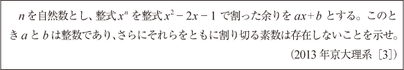 [C]背理法と数学的帰納法で証明する割り算の問題(2013年京大理系3)