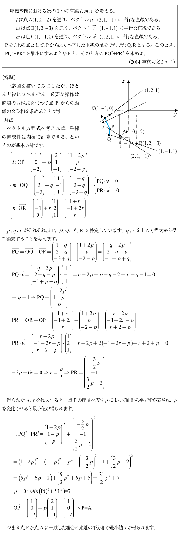 [B]直線の方程式と内積の問題(2014年京大文3理1)
