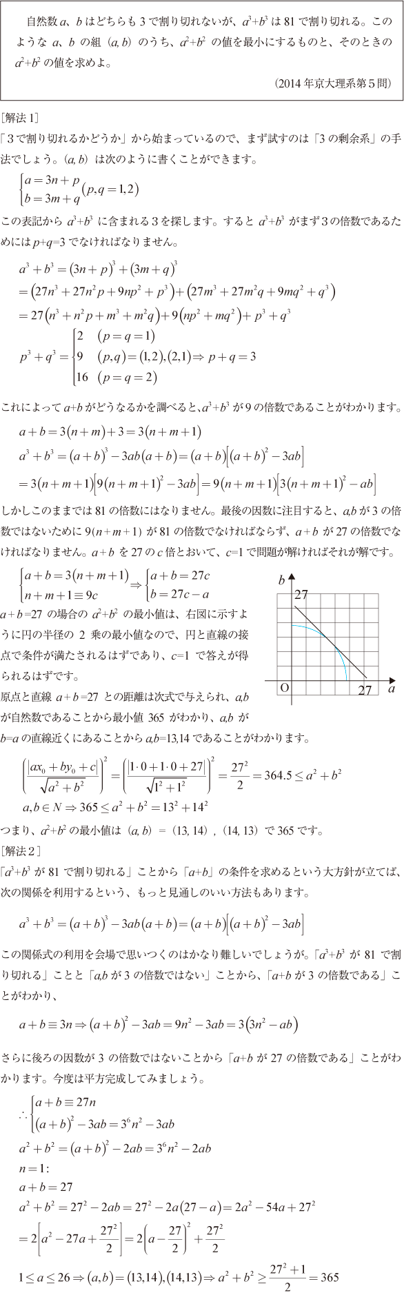 [C]3の剰余系を利用して最小値を求める問題(2014年京大理系5)
