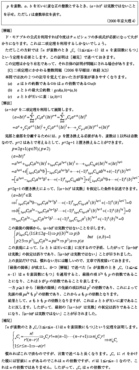 [D]複素数の素数乗が実数ではないことの証明問題(2000年京大理4)