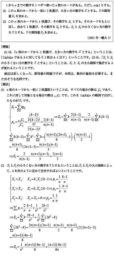 [C]n枚のカードのうち2枚のカードの数の期待値の問題