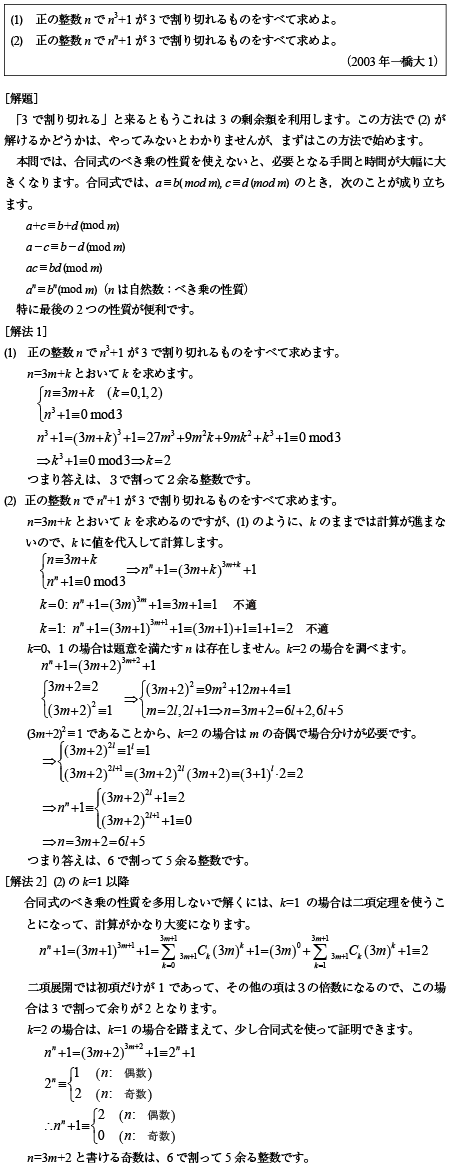 [C]3で割り切れる自然数nの3乗・n乗+1を求める問題