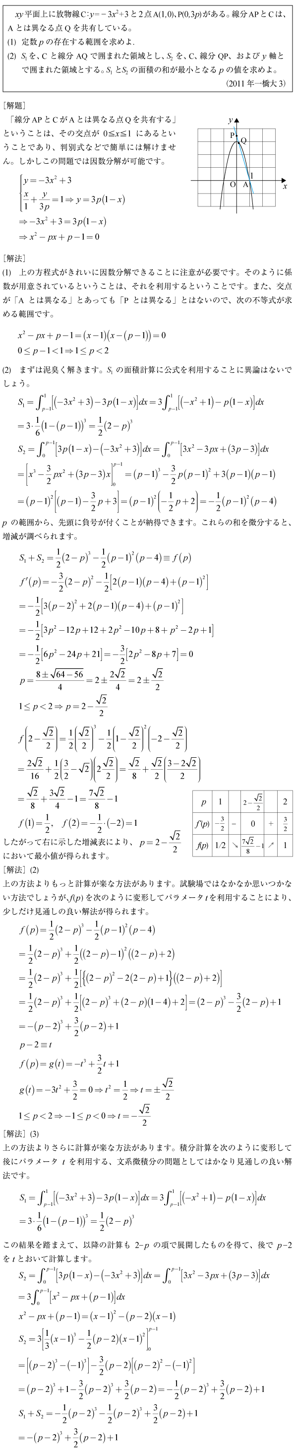 [B]2次関数と直線が囲む面積の問題(2011年一橋大3)
