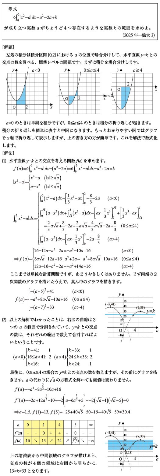 [C]絶対値記号付き積分から得られる曲線と水平直線が4交点を持つ