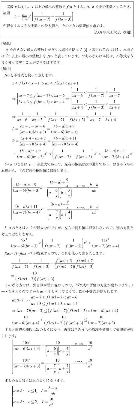 [C]ガウス記号類似記号を使った極限の収束の問題(2008年東工大2)