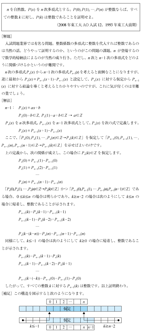 [D] n次多項式の整数性の証明問題(2008年東工大AO12)