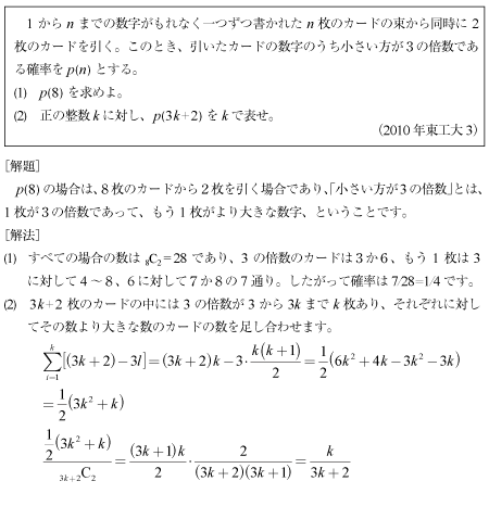 [B] 2枚のカードの小さい方が3の倍数である確率の問題