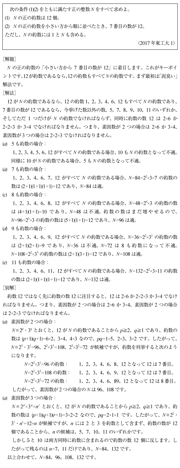 [C]約数の数などから整数を求める問題(2017年東工大1)