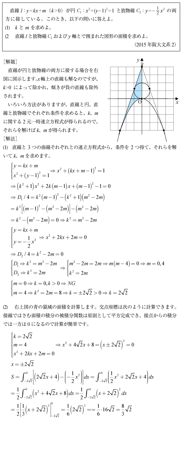 [B]2次関数と接線・y軸が囲む面積の問題(2015年阪大文系2)