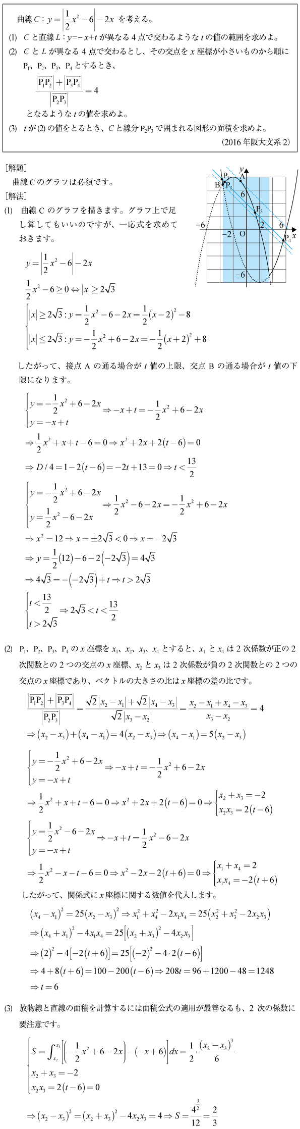 [B]絶対値記号付き2次関数と接線が囲む面積の問題(2016年阪大文系2)