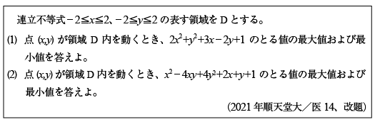 [B]2次曲線の値の最大値最小値を求める問題(2021年順天堂大/医14)