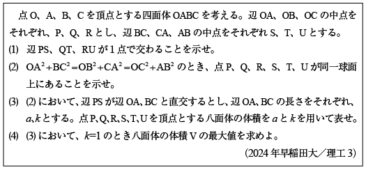 [C]四面体内の八面体の体積の問題(2024年早稲田大/理工3)