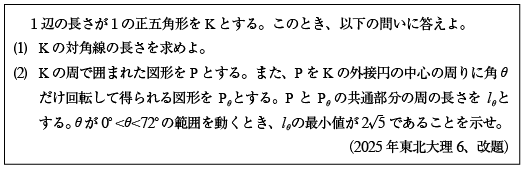 [D]正十角形の周長の最小値の問題(2025年東北大理6)