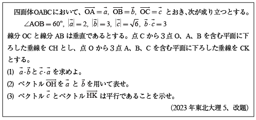 ●2026年1月 [B]直交四面体の問題(2023年東北大理5)