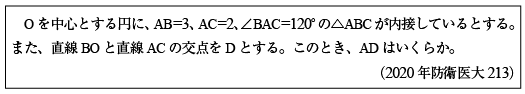 [C]余弦定理と方べきの定理を組み合わせる問題(2020年防衛医大213)