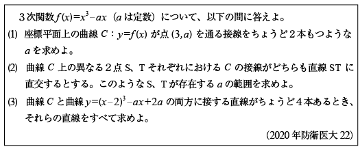 [C]2つの3次関数の4つの共通接線の問題(2020年防衛医大22)