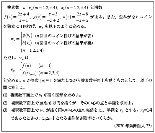 [C]複素数平面の写像の繰り返しの問題(2020年防衛医大23)