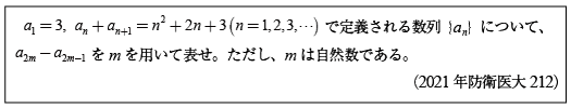 [C]奇数次・偶数次で異なる数列の問題(2021年防衛医大212)