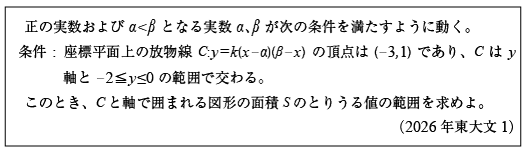 [B]開き方に幅がある放物線の面積公式の問題(2026年東大文1)