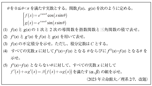 [B]オイラーの公式を背景とする微積分問題(2023年立命館大理3)