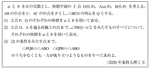 [B]図形と方程式と平面ベクトルのハイブリッド問題 (2026年東科大理工3)