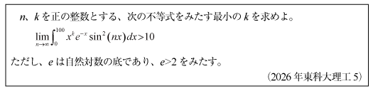 [C]n→∞の極限で残る項の評価の問題(2026年東科大理工5)