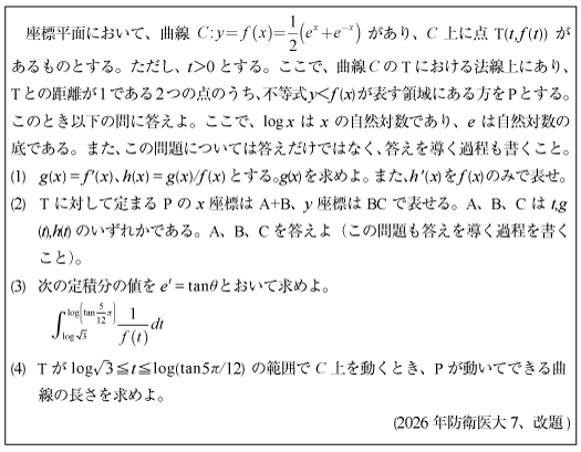 [C]双曲線の微積分総合問題(2026年防衛医大7)