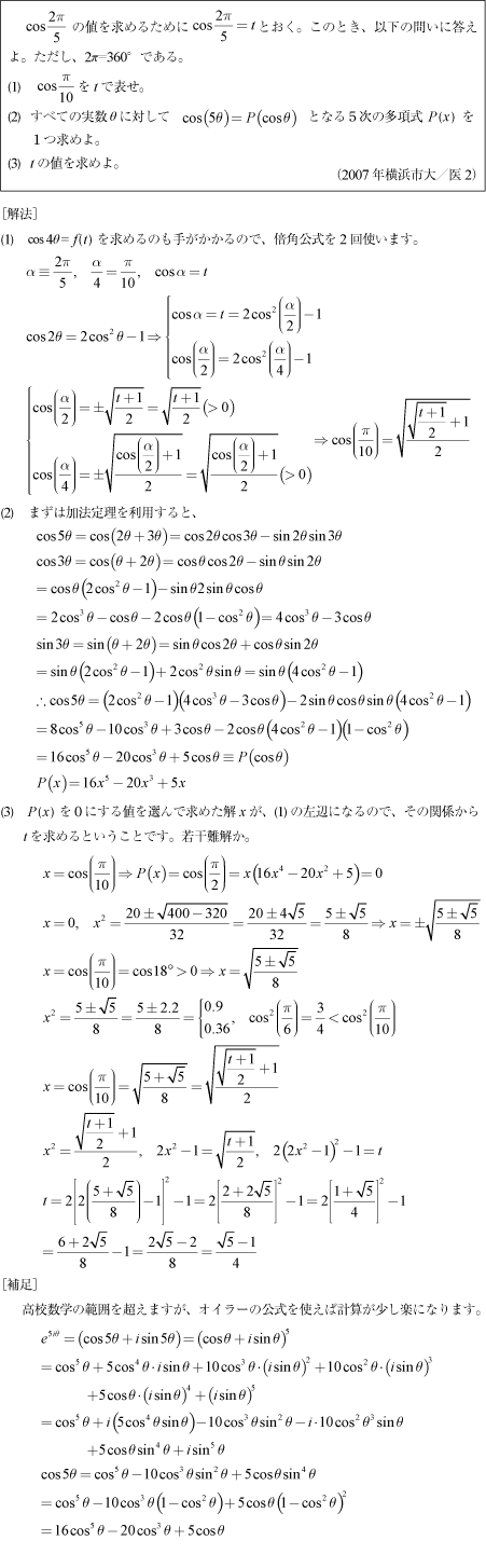 [D]チェビシェフの多項式の計算問題(2007年横浜市大/医2)