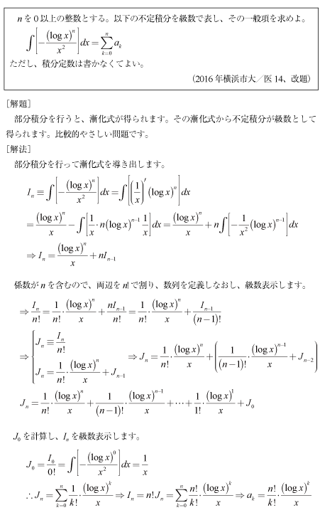 [C]対数積分の級数表示の問題(2016年横浜市大/医14)