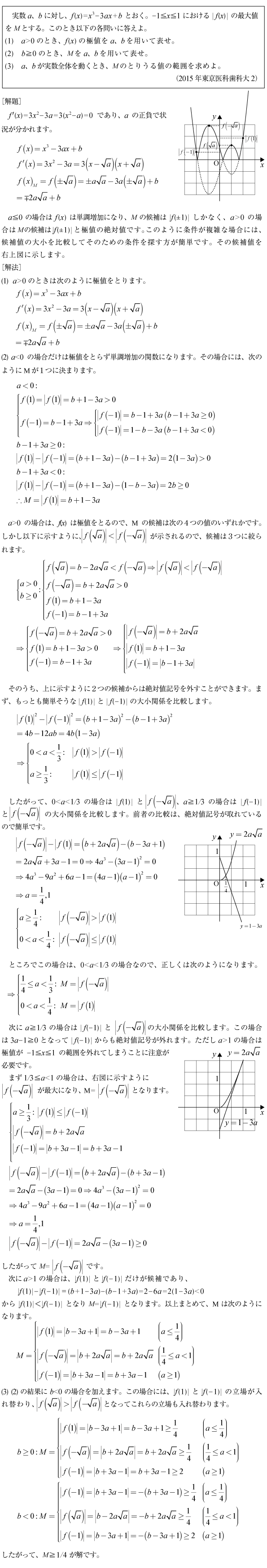 [C]絶対値記号付き3次関数の最大値の問題