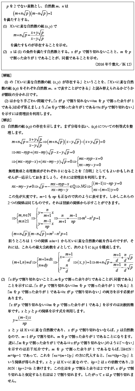 [D]無理数を絡めた素数による割り算の難問(2016年千葉大/医12)