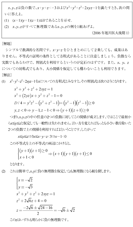 [C]2次方程式が与えられた不等式問題(2006旭川医大後期1)