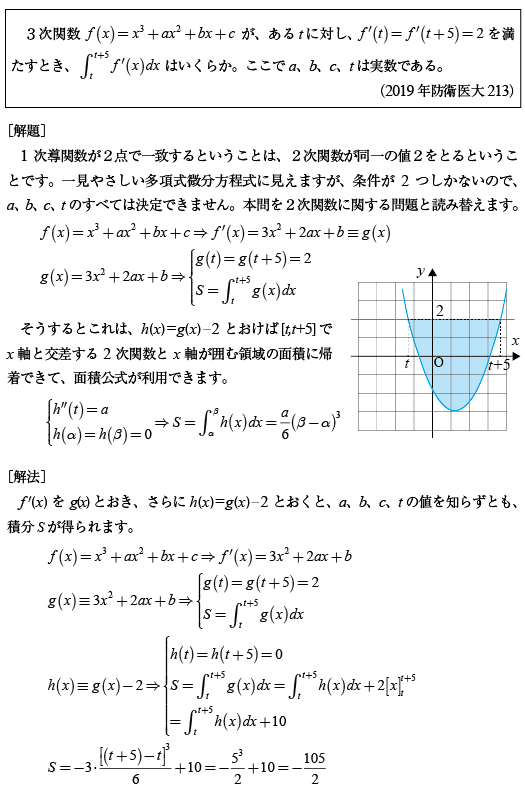 [B]多項式微分方程式のような面積積分問題(2019年防衛医大213)