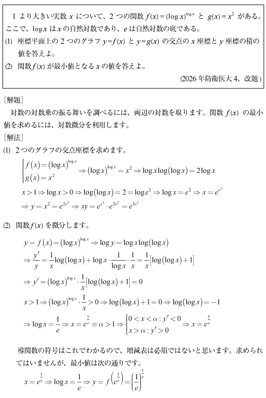 [C]対数の対数の問題(2026年防衛医大4)