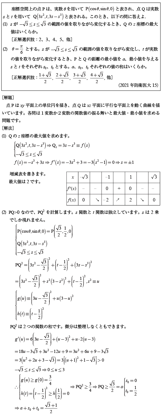 [C]1変数・2変数関数の値域の問題(2021年防衛医大15)