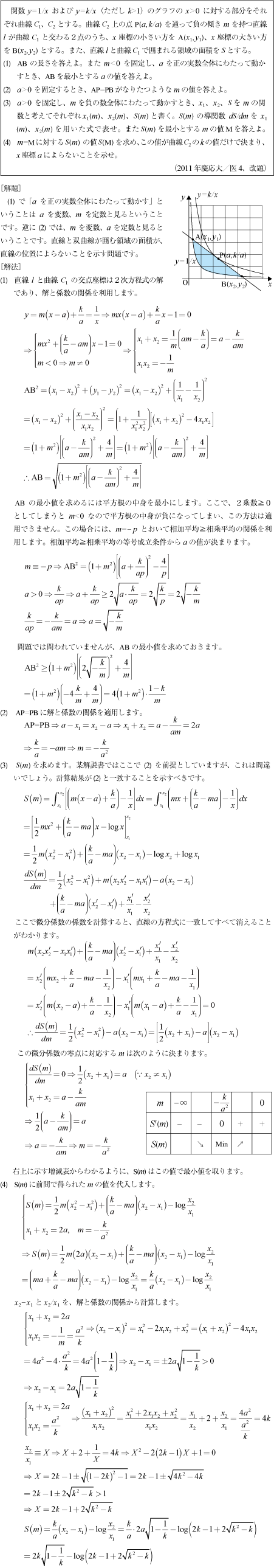 [C]双曲線と直線が囲む領域の面積の問題(2011年慶大/医4)