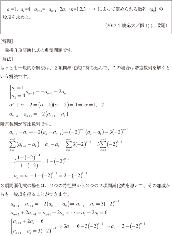 [B]隣接三項間漸化式のやさしい問題(2012年慶大/医11)