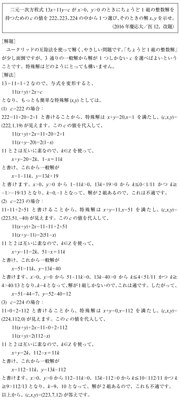 [B]ユークリッドの互除法の問題(2016年慶応大/医12)