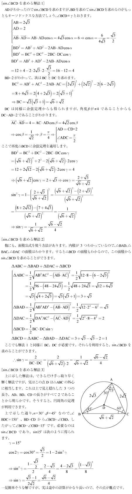 [C]三角形の外接円の半径と角度を求める問題(2015年順天堂大/医14)