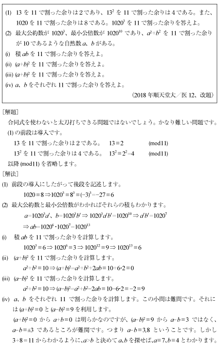 [B]合同式を利用する計算問題(2018年順天堂/医12)