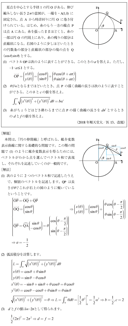 [B]円の伸開線に関する媒介変数表示の問題(2018年順天堂/医13)