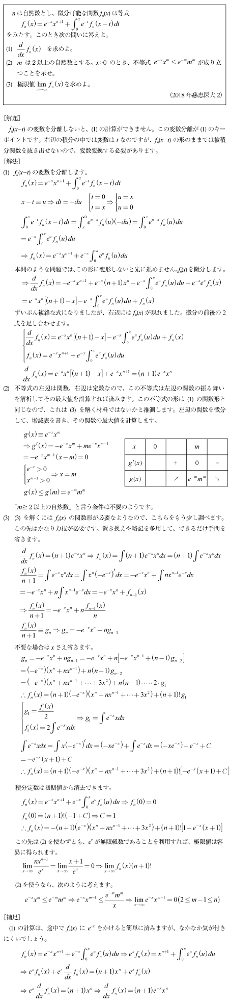 [C]関数方程式と極限値の計算問題(2018年慈恵医大2)