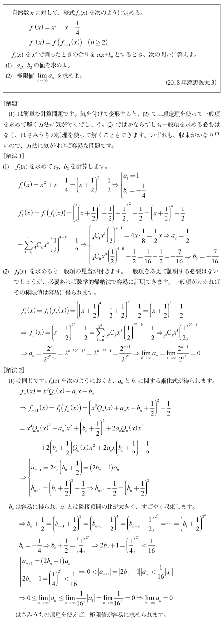 [C]関数漸化式と割り算と極限値の問題(2018年慈恵医大3)