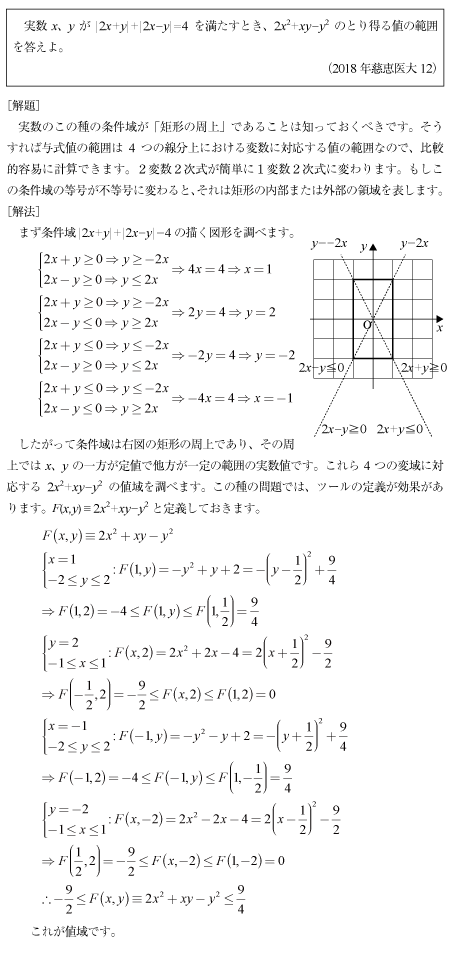[C]絶対値記号式と2変数2次関数の値域の問題