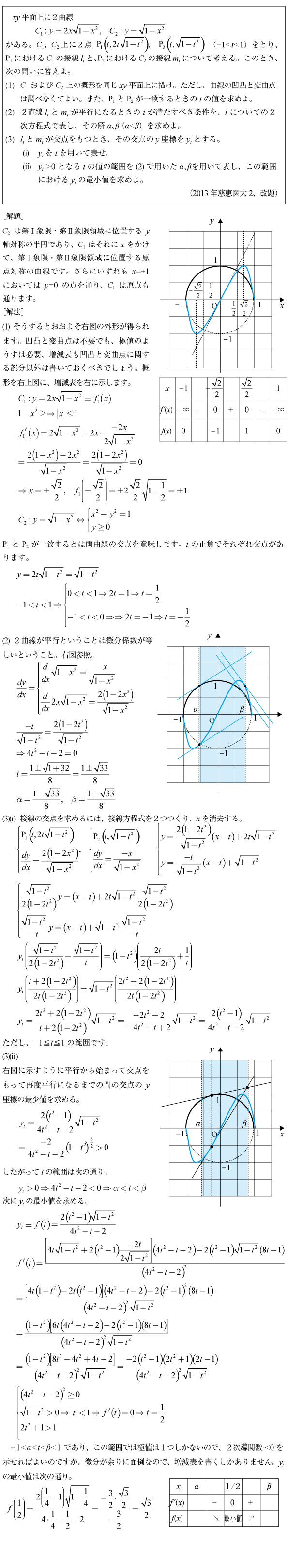 [C]円と曲線の接線の交点座標の問題(2013年慈恵医大2)